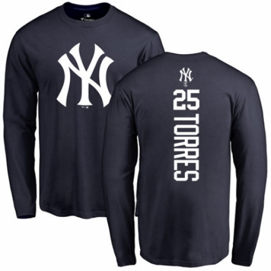 >MLB Nike New York Yankees #25 Gleyber Torres Navy Blue Backer Long Sleeve T-Shirt