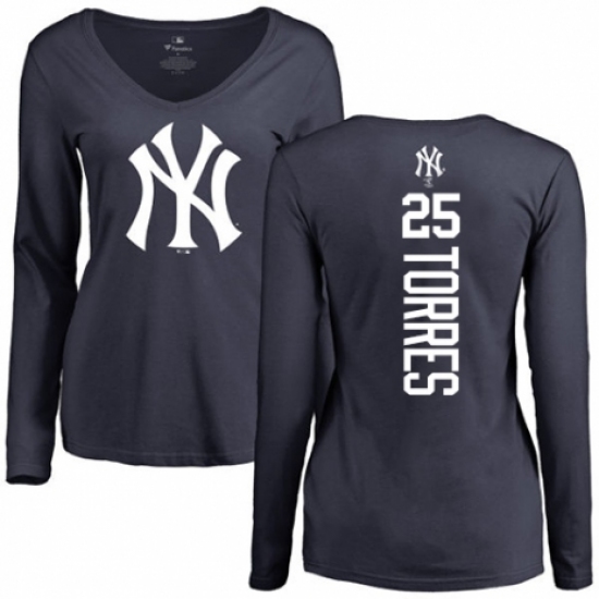 >MLB Women's Nike New York Yankees #25 Gleyber Torres Navy Blue Backer Long Sleeve T-Shirt