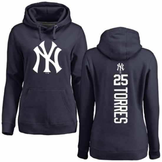 >MLB Women's Nike New York Yankees #25 Gleyber Torres Navy Blue Backer Pullover Hoodie