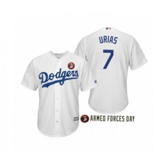 >Men's 2019 Armed Forces Day Julio Urias #7 Los Angeles Dodgers White Jersey