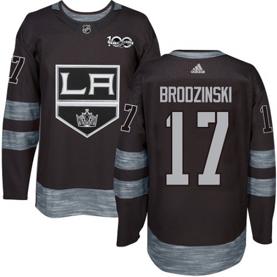Men's Adidas Los Angeles Kings #17 Jonny Brodzinski Authentic Black 1917-2017 100th Anniversary NHL Jersey