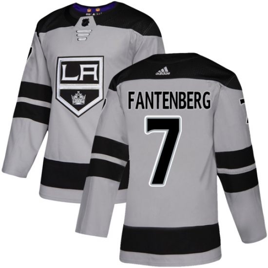 >Men's Adidas Los Angeles Kings #7 Oscar Fantenberg Premier Gray Alternate NHL Jersey