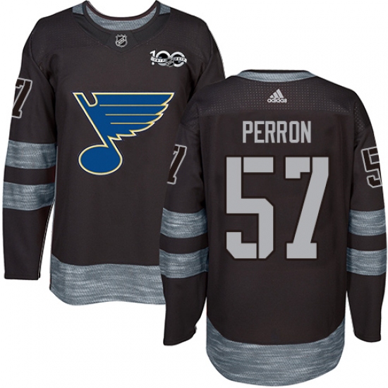 Men's Adidas St. Louis Blues #57 David Perron Authentic Black 1917-2017 100th Anniversary NHL Jersey