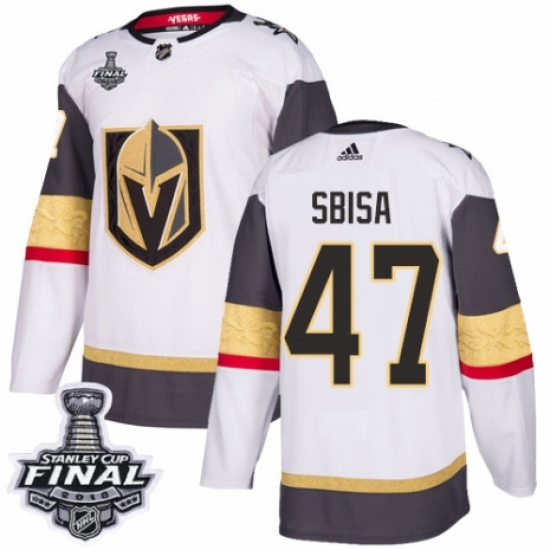 Men's Adidas Vegas Golden Knights #47 Luca Sbisa Authentic White Away 2018 Stanley Cup Final NHL Jersey