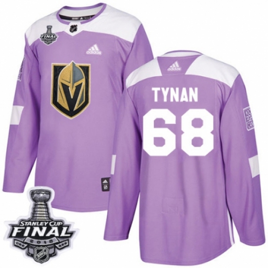 >Men's Adidas Vegas Golden Knights #68 T.J. Tynan Authentic Purple Fights Cancer Practice 2018 Stanley Cup Final NHL Jersey