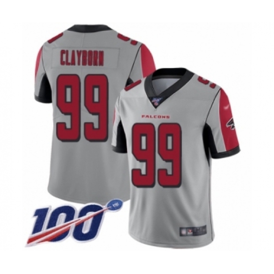 >Men's Atlanta Falcons #99 Adrian Clayborn Limited Silver Inverted Legend 100th Season Football Jersey