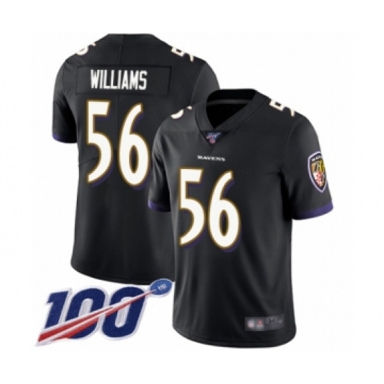 >Men's Baltimore Ravens #56 Tim Williams Black Alternate Vapor Untouchable Limited Player 100th Season Football Jersey