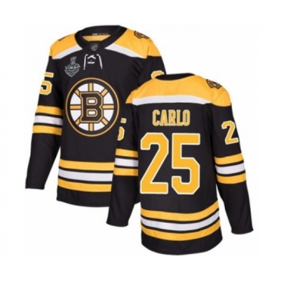 Men's Boston Bruins #25 Brandon Carlo Authentic Black Home 2019 Stanley Cup Final Bound Hockey Jersey