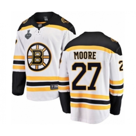 Men's Boston Bruins #27 John Moore Authentic White Away Fanatics Branded Breakaway 2019 Stanley Cup Final Bound Hockey Jersey
