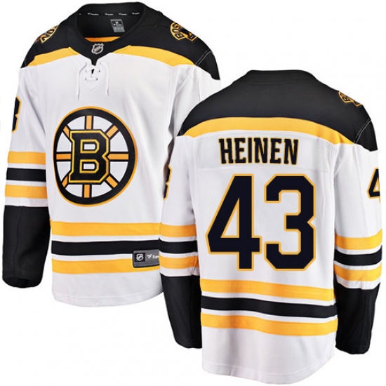 Home>NHL>Boston Bruins>Danton Heinen>Men's Boston Bruins #43 Danton Heinen Authentic White Away Fanatics Branded Breakaway NHL Jersey