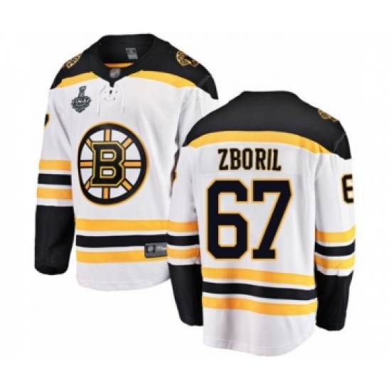 Men's Boston Bruins #67 Jakub Zboril Authentic White Away Fanatics Branded Breakaway 2019 Stanley Cup Final Bound Hockey Jersey