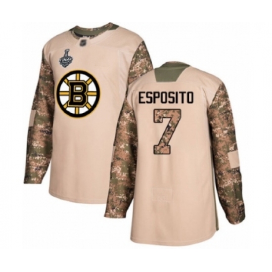 Men's Boston Bruins #7 Phil Esposito Authentic Camo Veterans Day Practice 2019 Stanley Cup Final Bound Hockey Jersey