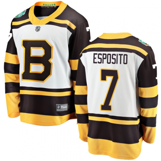 >Men's Boston Bruins #7 Phil Esposito White 2019 Winter Classic Fanatics Branded Breakaway NHL Jersey