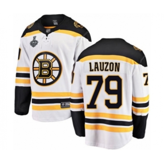 Men's Boston Bruins #79 Jeremy Lauzon Authentic White Away Fanatics Branded Breakaway 2019 Stanley Cup Final Bound Hockey Jersey