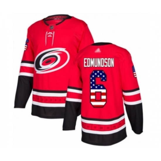 Men's Carolina Hurricanes #6 Joel Edmundson Authentic Red USA Flag Fashion Hockey Jersey