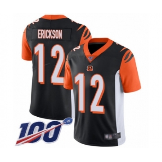 >Men's Cincinnati Bengals #12 Alex Erickson Black Team Color Vapor Untouchable Limited Player 100th Season Football Jersey
