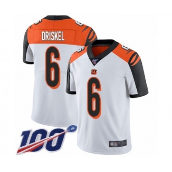 >Men's Cincinnati Bengals #6 Jeff Driskel White Vapor Untouchable Limited Player 100th Season Football Jersey