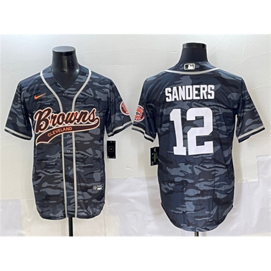 >Men's Cleveland Browns #12 Shedeur Sanders Gray Camo With Cool Base Stitched Baseball Jersey