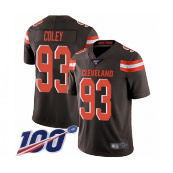 >Men's Cleveland Browns #93 Trevon Coley Brown Team Color Vapor Untouchable Limited Player 100th Season Football Jersey