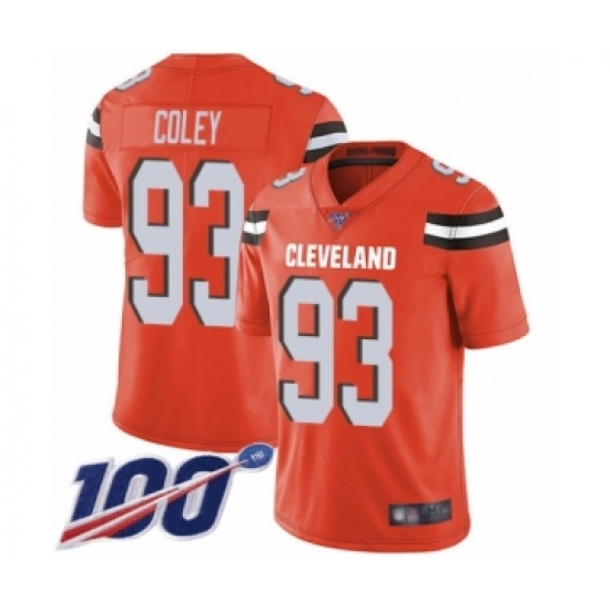 >Men's Cleveland Browns #93 Trevon Coley Orange Alternate Vapor Untouchable Limited Player 100th Season Football Jersey
