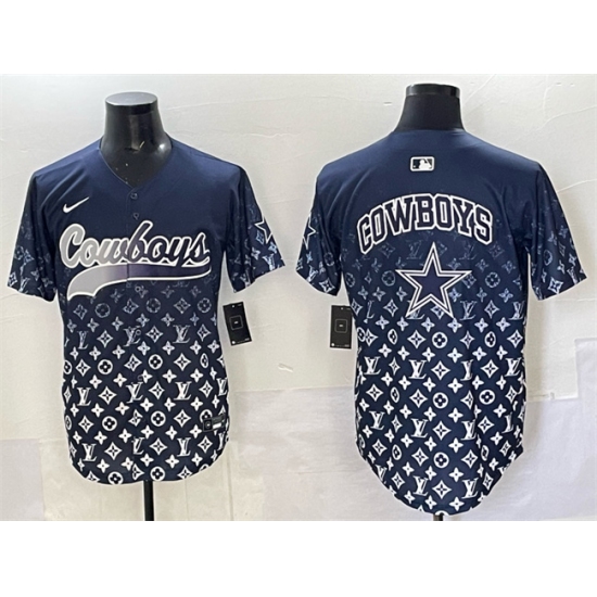 >Men's Dallas Cowboys Team Big Logo Navy Limited Stitched Baseball Jersey