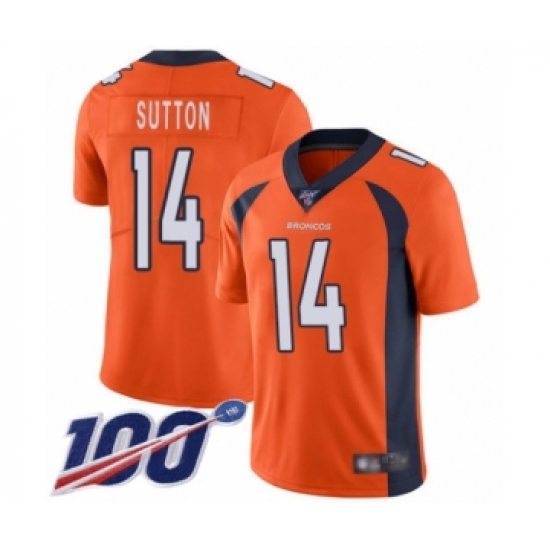 Men's Denver Broncos #14 Courtland Sutton Orange Team Color Vapor Untouchable Limited Player 100th Season Football Jersey