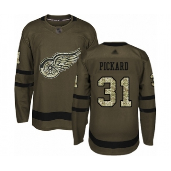 Men's Detroit Red Wings #31 Calvin Pickard Authentic Green Salute to Service Hockey Jersey