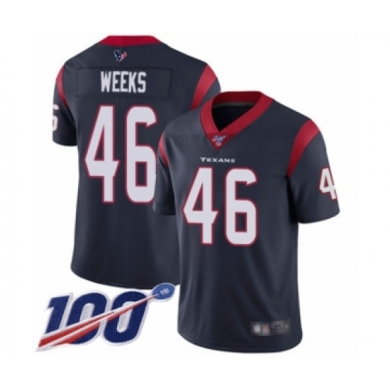 >Men's Houston Texans #46 Jon Weeks Navy Blue Team Color Vapor Untouchable Limited Player 100th Season Football Jersey