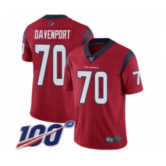 >Men's Houston Texans #70 Julien Davenport Red Alternate Vapor Untouchable Limited Player 100th Season Football Jersey