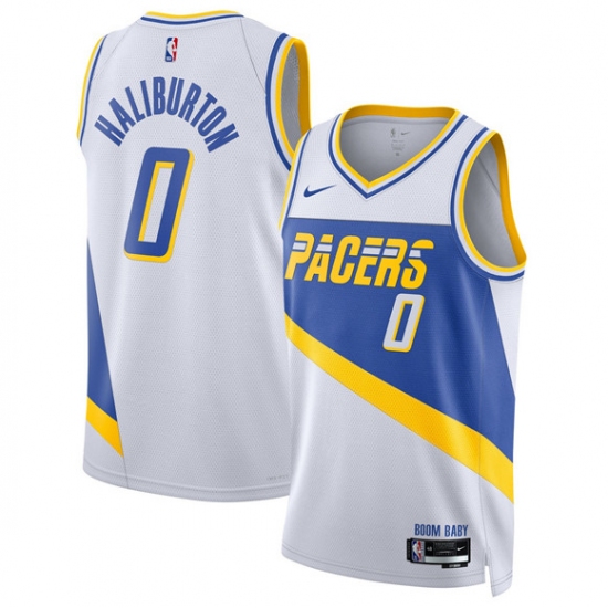 Men's Indiana Pacers #0 Tyrese Haliburton White Association Edition Sponsor Stitched Jersey