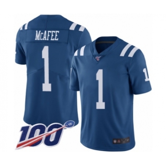 Men's Indianapolis Colts #1 Pat McAfee Limited Royal Blue Rush Vapor Untouchable 100th Season Football Jersey