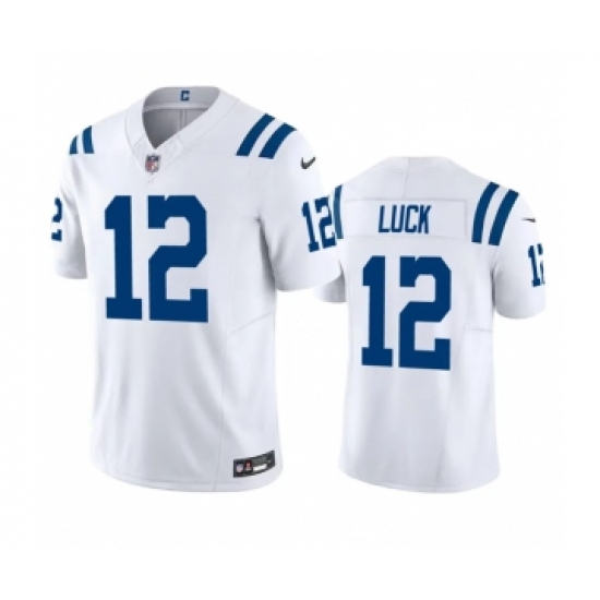 >Men's Indianapolis Colts #12 Andrew Luck White 2023 F.U.S.E Vapor Untouchable Stitched Football Jersey