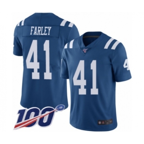 >Men's Indianapolis Colts #41 Matthias Farley Limited Royal Blue Rush Vapor Untouchable 100th Season Football Jersey