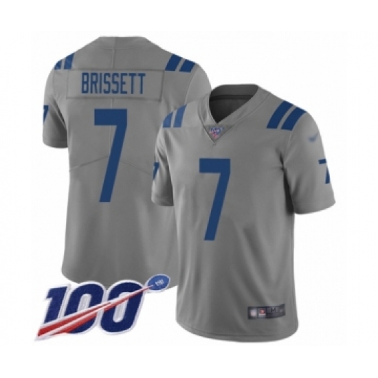 >Men's Indianapolis Colts #7 Jacoby Brissett Limited Gray Inverted Legend 100th Season Football Jersey