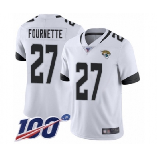 >Men's Jacksonville Jaguars #27 Leonard Fournette White Vapor Untouchable Limited Player 100th Season Football Jersey