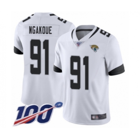 >Men's Jacksonville Jaguars #91 Yannick Ngakoue White Vapor Untouchable Limited Player 100th Season Football Jersey