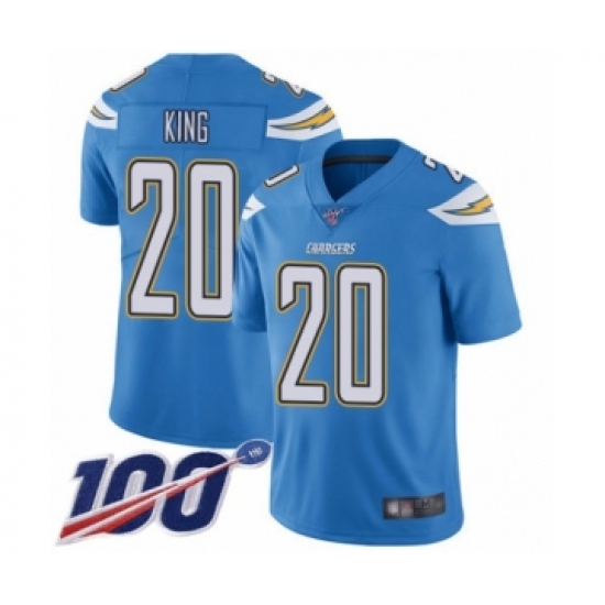 >Men's Los Angeles Chargers #20 Desmond King Electric Blue Alternate Vapor Untouchable Limited Player 100th Season Football Jersey