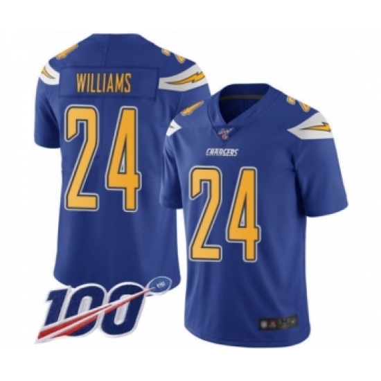 >Men's Los Angeles Chargers #24 Trevor Williams Limited Electric Blue Rush Vapor Untouchable 100th Season Football Jersey