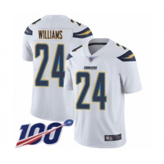 >Men's Los Angeles Chargers #24 Trevor Williams White Vapor Untouchable Limited Player 100th Season Football Jersey