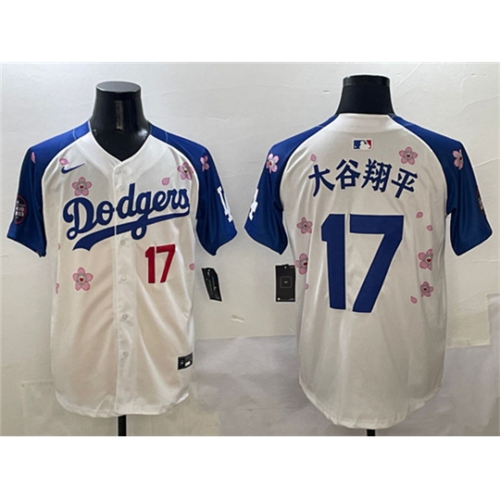 >Men's Los Angeles Dodgers #17 大谷翔平 White Royal 2025 Tokyo Series Limited Stitched Baseball Jersey