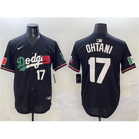 >Men's Los Angeles Dodgers #17 Shohei Ohtani Black Mexico Flag Limited Stitched Baseball Jersey