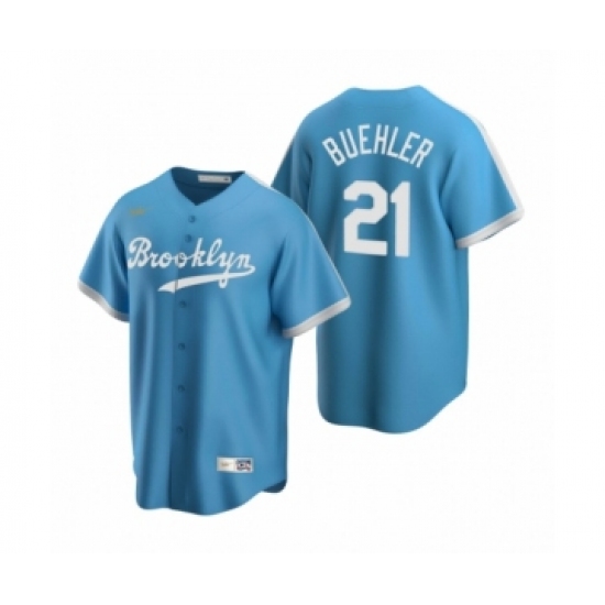 >Men's Los Angeles Dodgers #21 Walker Buehler Nike Light Blue Cooperstown Collection Alternate Jersey