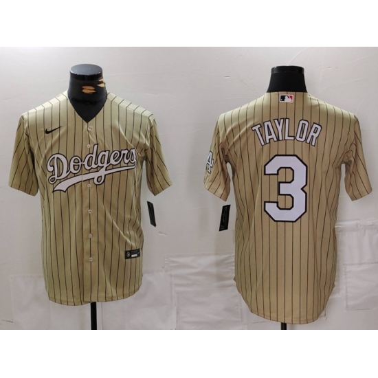 Men's Los Angeles Dodgers #3 Chris Taylor Cream Pinstripe Stitched Cool Base Nike Jersey