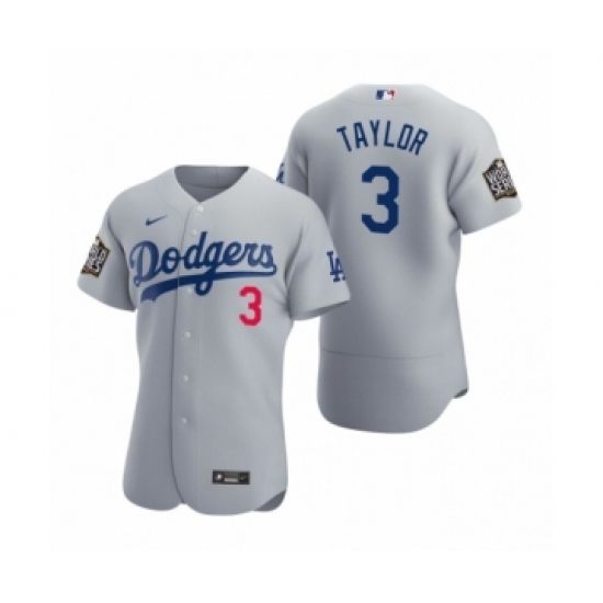 >Men's Los Angeles Dodgers #3 Chris Taylor Nike Gray 2020 World Series Authentic Jersey