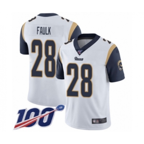 >Men's Los Angeles Rams #28 Marshall Faulk White Vapor Untouchable Limited Player 100th Season Football Jersey