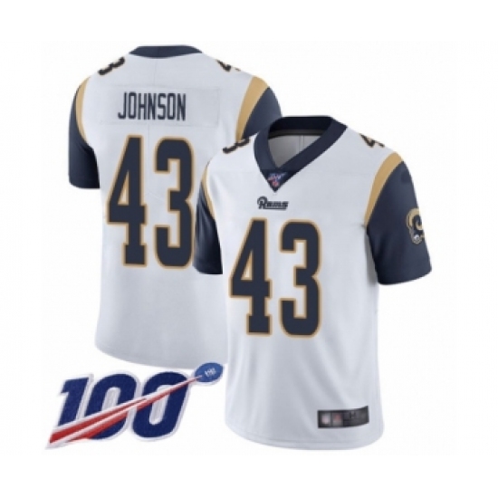 Men's Los Angeles Rams #43 John Johnson White Vapor Untouchable Limited Player 100th Season Football Jersey