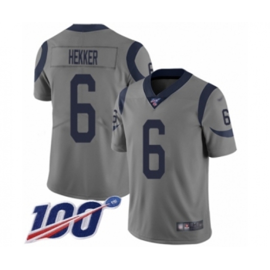 Men's Los Angeles Rams #6 Johnny Hekker Limited Gray Inverted Legend 100th Season Football Jersey