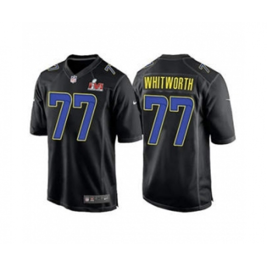 Men's Los Angeles Rams #77 Andrew Whitworth Black 2022 Super Bowl LVI Game Stitched Jersey