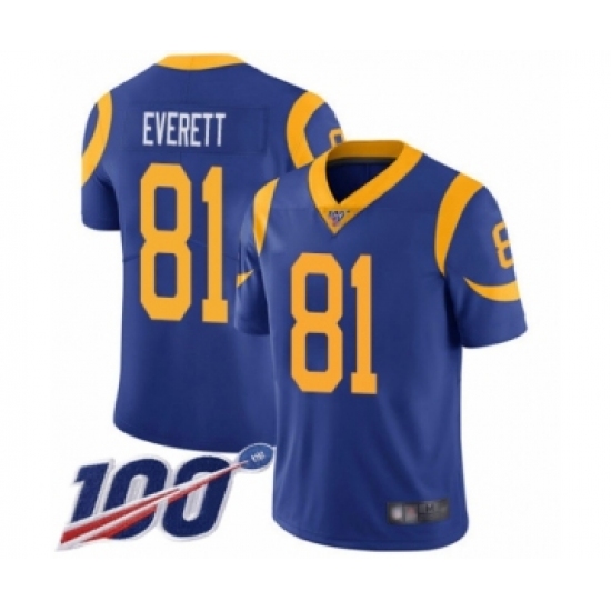 Men's Los Angeles Rams #81 Gerald Everett Royal Blue Alternate Vapor Untouchable Limited Player 100th Season Football Jersey