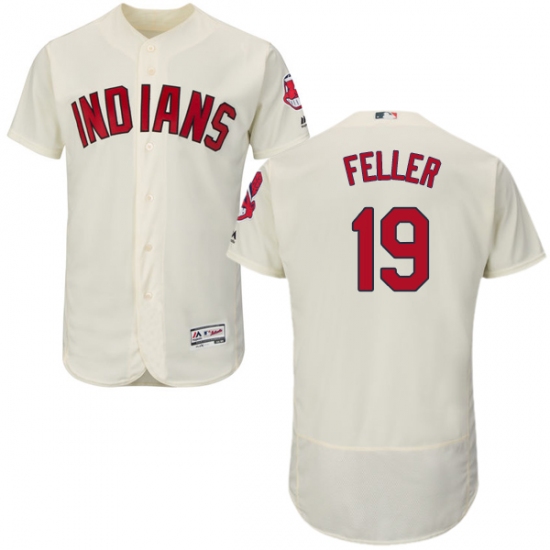 Home>MLB>Cleveland Indians>Bob Feller>Men's Majestic Cleveland Indians #19 Bob Feller Cream Alternate Flex Base Authentic Collection MLB Jersey